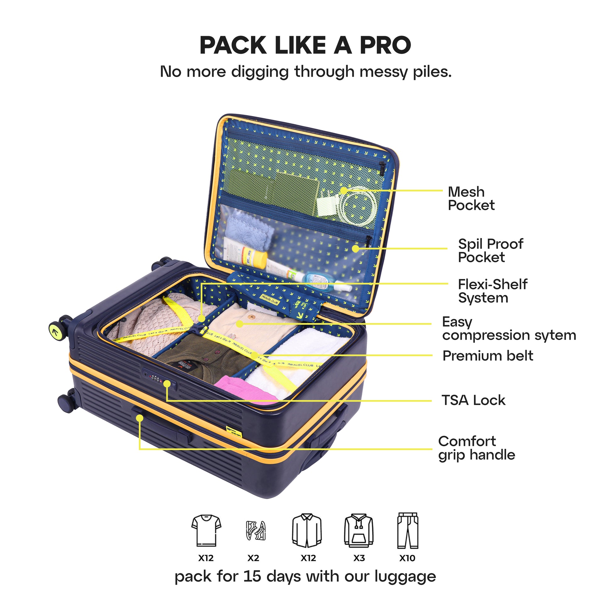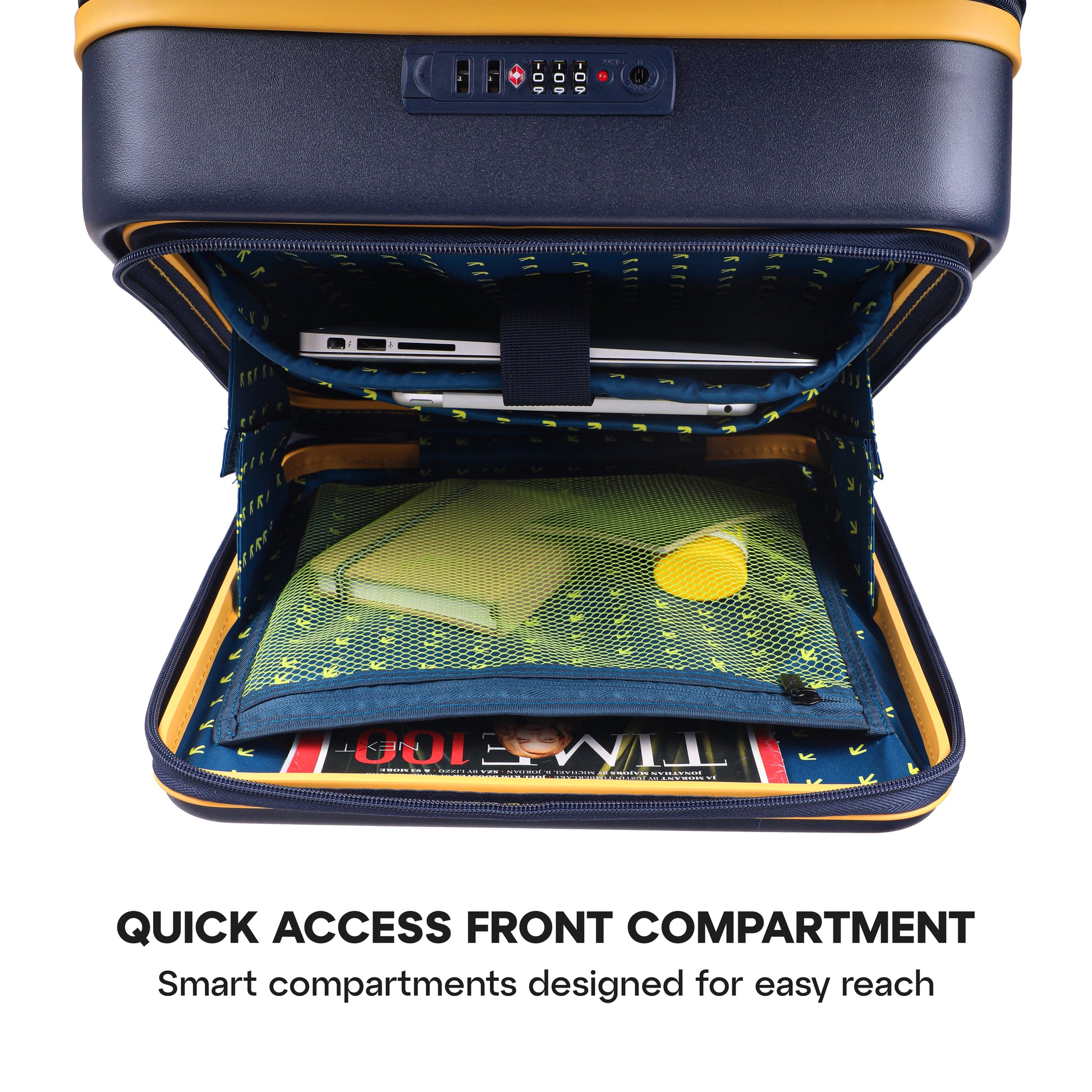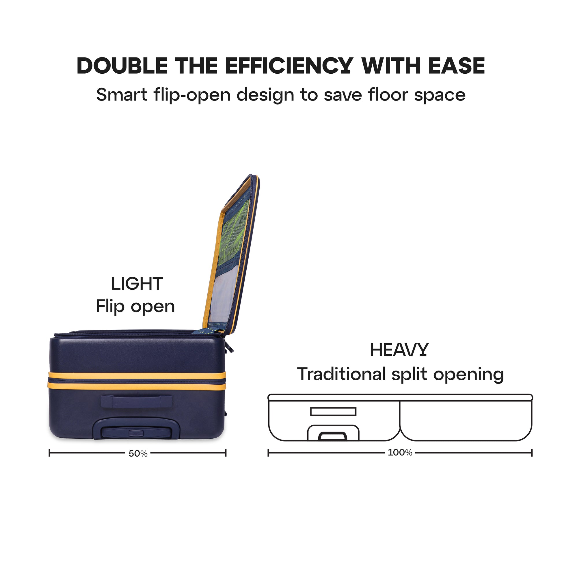 Our innovative hard-shell suitcases are designed to take 50% less floor space, making them as smart at home as they are on the road. Inside, removable shelves double as partitions, giving you the flexibility to separate his-and-hers essentials or simply organize your outfits with ease. Each shelf also works as a compression pad, so you can maximize space without compromise. Add to that a spill-proof pocket for extra peace of mind, and you’ve got luggage that’s more than just storage it’s a travel companion built for style, efficiency, and effortless adventures.