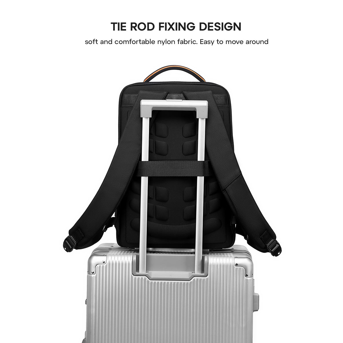 Simply slide the backpack’s luggage sleeve over your trolley handle for secure attachment. This allows for effortless maneuvering and convenient travel, keeping your hands free for other tasks.